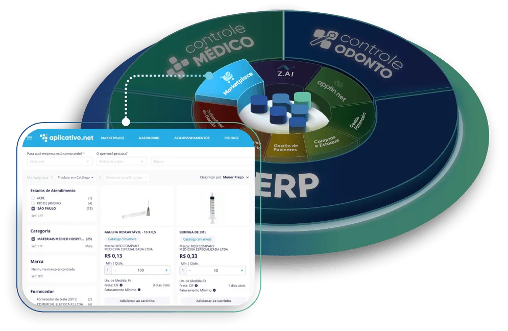 A vitrine inteligente do nosso ecossistema onde sua clínica encontra, compara e compra insumos e serviços em poucos cliques, tudo em um só lugar.